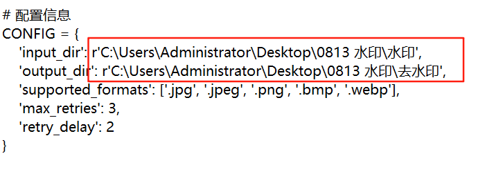 其次就是输入输出位置,生成的脚本会默认提示词内使用的位置,如需更改也可以修改一下配置信息。