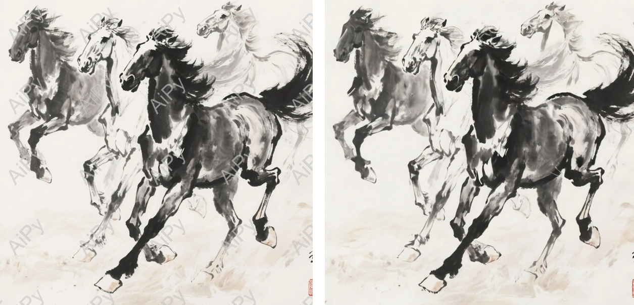 可以看到哪怕是“满印”、“半透明”、“斜放”的水印也去除的一干二净,关键是几秒就能做好一张图!