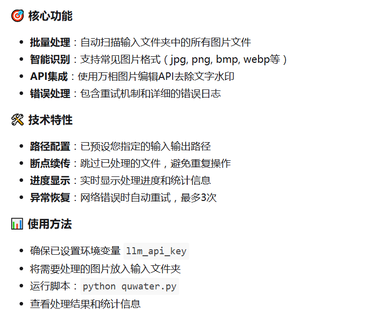 如果还需要处理其他图片,只需将新图片放入输入文件夹,再次运行脚本即可!脚本会自动识别新文件并跳过已处理的文件哦~