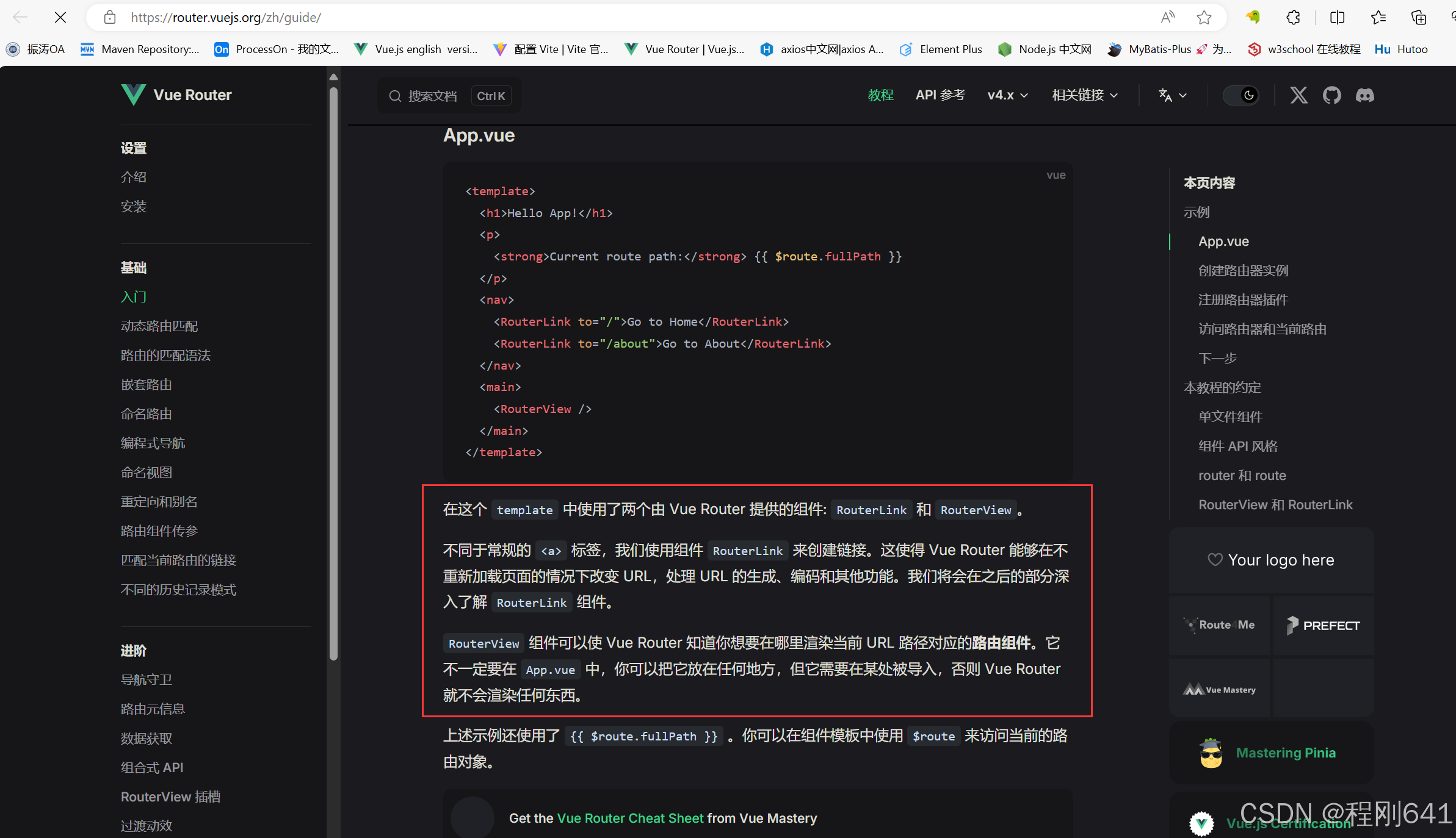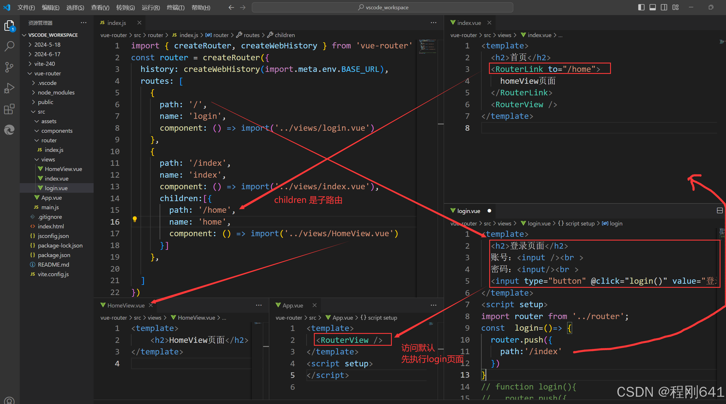 <router-link>:该标签是一个vue-router中已经内置的组件,它会被渲染成一个<a>标签。