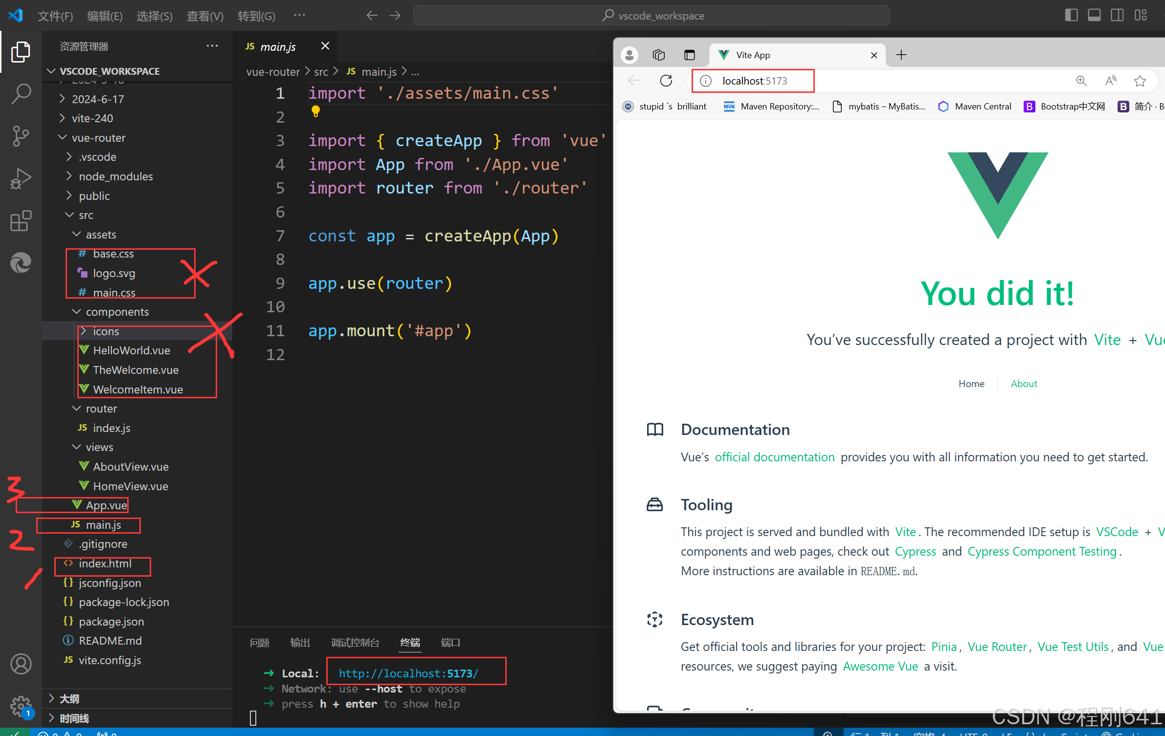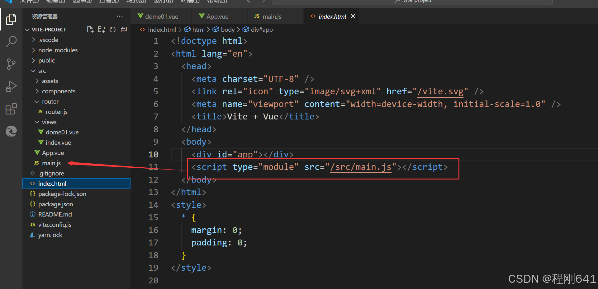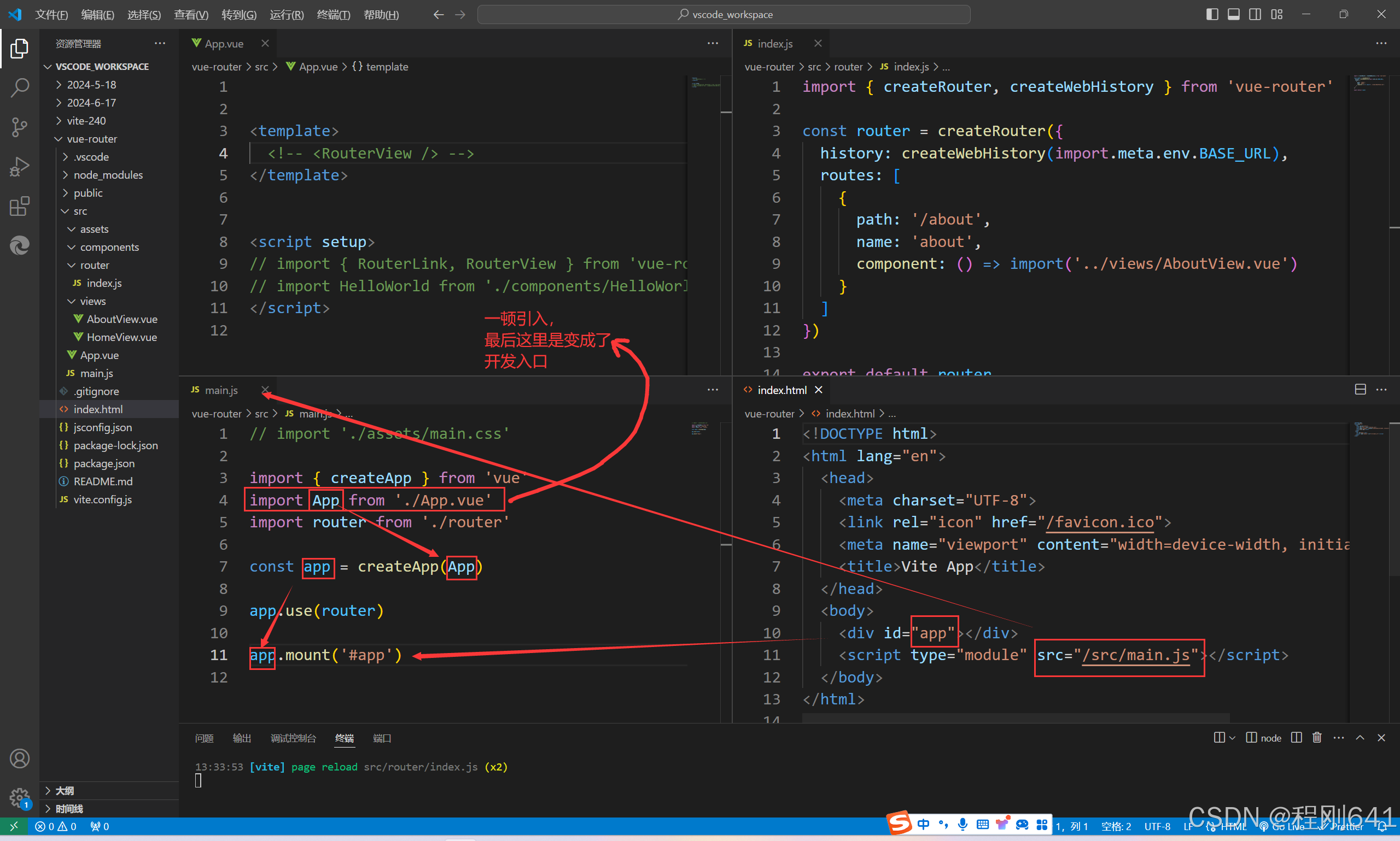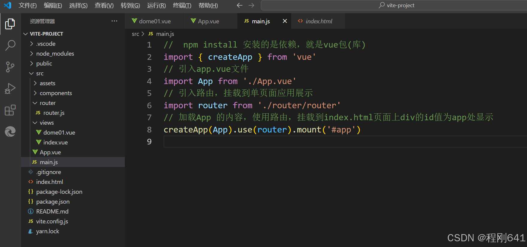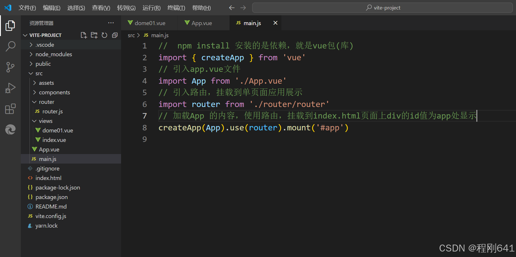 main.js没有变动,但是是引入了router,导入使用了router对象
