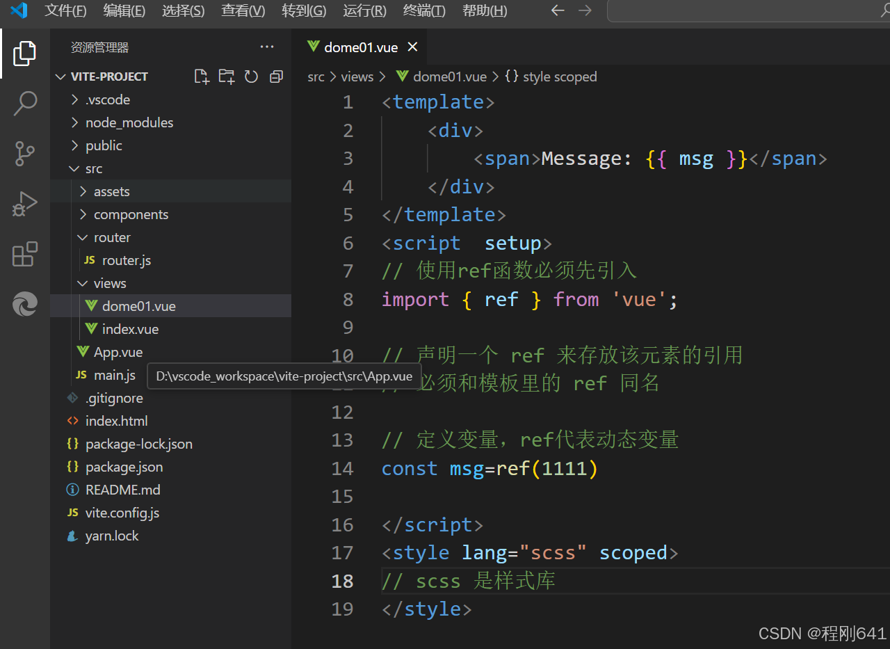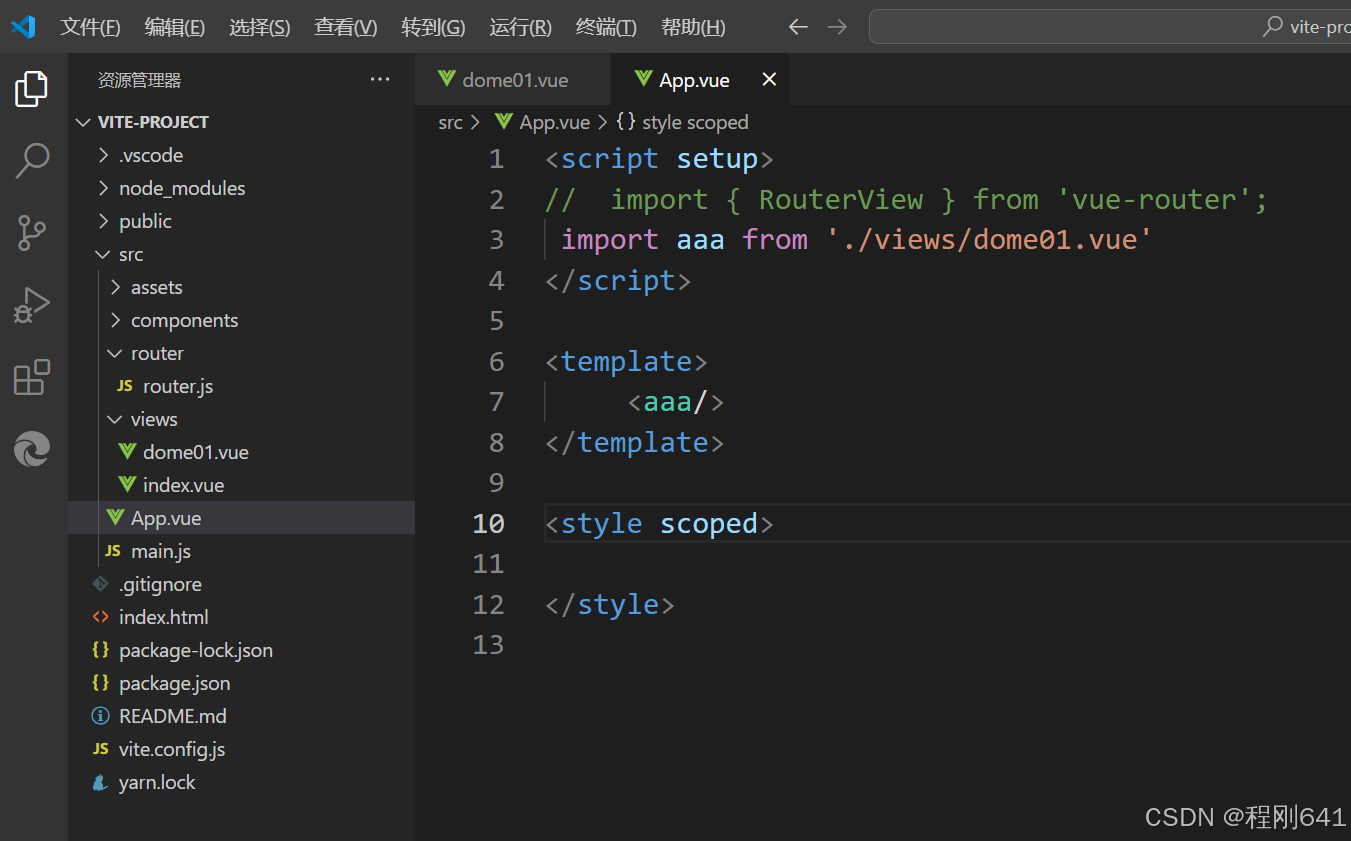 固定写法,通过aaa变量,引入demo01.vue到这里