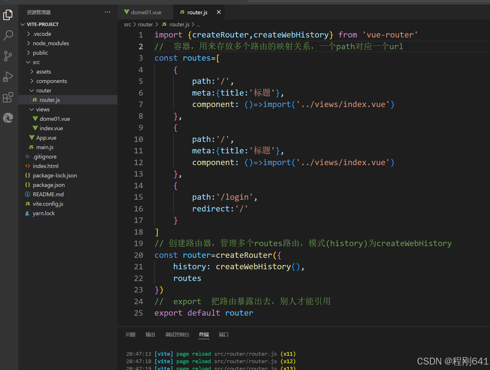 在src下新建router文件夹,新建index.js文件,并注册组件