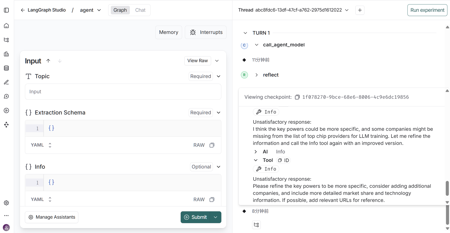 对了,有一点,使用私有部署模型或不用默认的Anthropic模型的话,要在.env和代码里去找哪里定义了使用模型,使用模型的名称不是在.env里设置的,这点不太好。比如 react-agent的模型名称设置在context.py里面,data-enrichment-main的模型设置在configuration.py里面。默认的都是Anthropic的模型,但是Anthropic没有海外手机号不能注册。