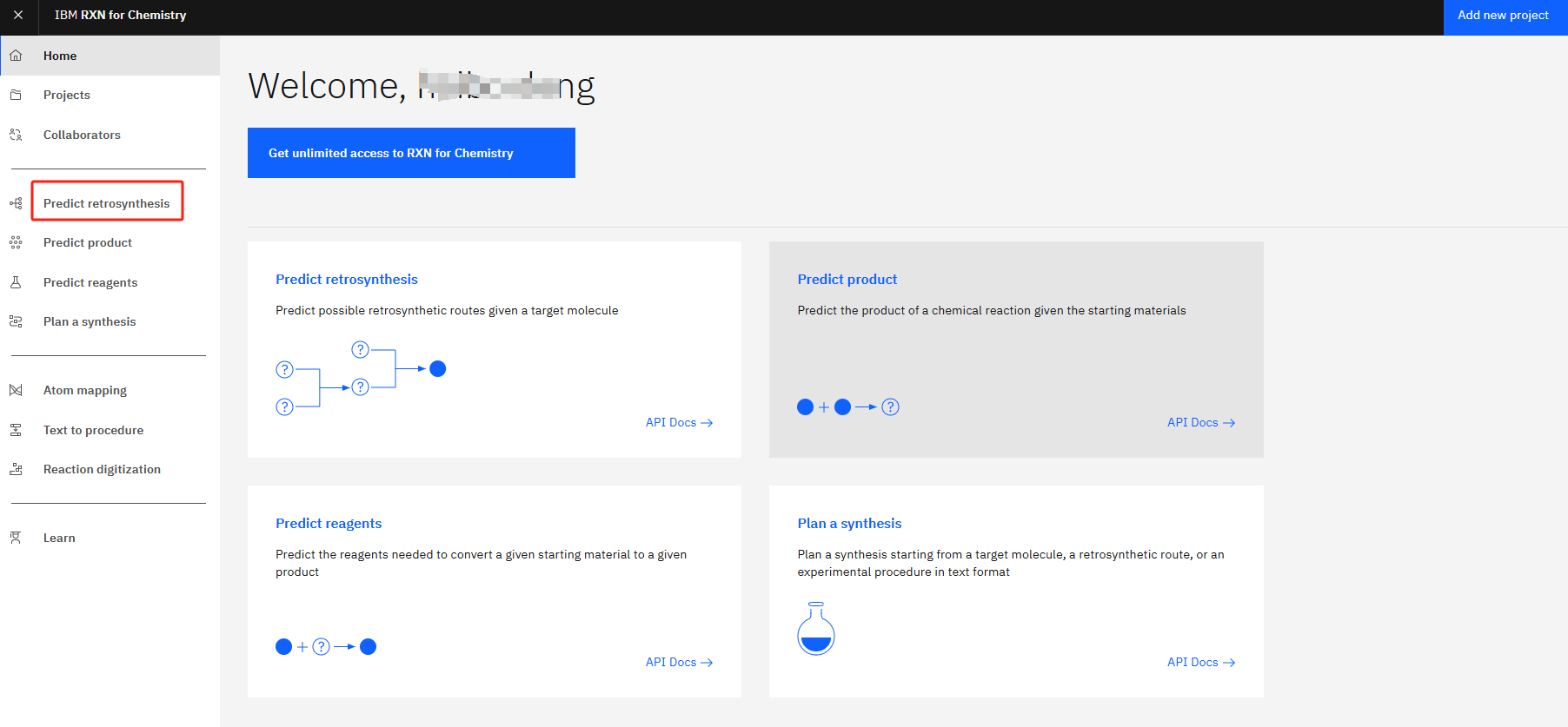 IBM RXN for Chemistry 是 IBM 开发的基于人工智能的在线化学合成预测平台。它结合了深度学习和神经网络技术,能够自动为目标分子生成合成路线,广泛应用于有机合成和药物化学。与传统的基于规则的逆合成分析工具不同,IBM RXN 利用深度学习模型进行反应预测。通过对数百万条化学反应数据进行训练,AI 能够在分子层面捕捉复杂的反应模式。IBM RXN 是一个开放的平台,用户可以免费注册并使用其基本功能。这对于学生和中小型实验室非常友好,提供了无成本的逆合成分析工具。该工具能够在几秒钟内生成合成方案,我们可以通过简单的分子式输入获得即时的反馈结果。