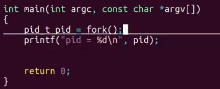 功能:通过拷贝父进程产生一个新的子进程,会有两个进程同时在工作,所以如下代码会有两次。子进程完全拷贝父进程0-3G的虚拟内存空间。子进程拷贝父进程PCB(进程控制块)中的部分内容:PID不拷贝