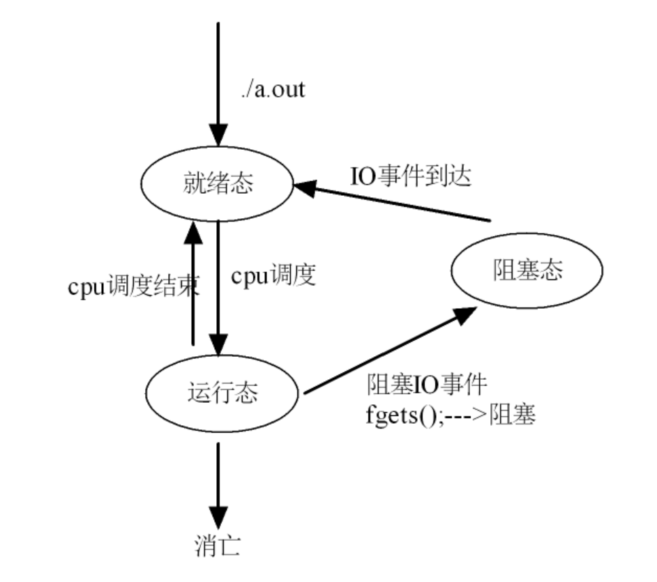 main.c(程序)(硬盘)-----a.out(程序)(硬盘)-------./a/out(进程)(内存)