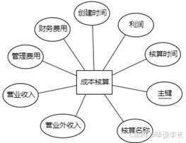 成本核算实体包括创建时间、财务费用、管理费用、利润、核算时间、营业收入、营业外收入、核算名称、主键。成本核算实体属性图如图4-4所示: