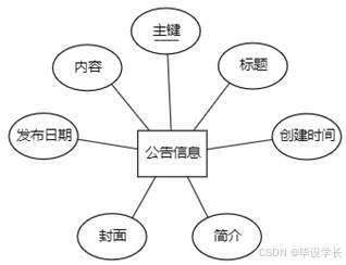 公告信息实体包括主键、内容、发布日期、标题、创建时间、封面、简介公告。信息实体属性图如图4-7所示: