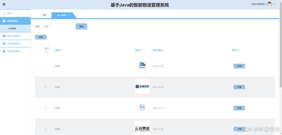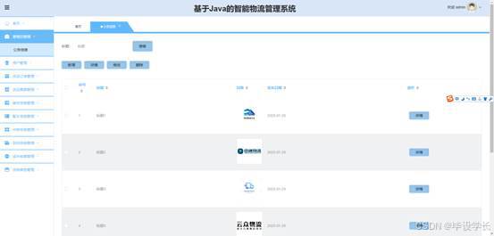 摘要: 本文设计并实现了一套基于Java的智能物流管理系统,采用SpringBoot后端框架、MySQL数据库及Vue.js前端技术,旨在解决传统物流管理中效率低、信息不透明等问题。系统包含订单管理、货运票据、接货配车、中转到货等核心模块,支持全流程数字化管理。通过角色划分(管理员、司机、客户),系统实现了多维度数据查询与统计分析,优化了物流资源配置。测试结果表明,系统功能完整、响应迅速,具备较高