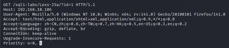 GET /sqli-labs/Less-25/?id=1 HTTP/1.1