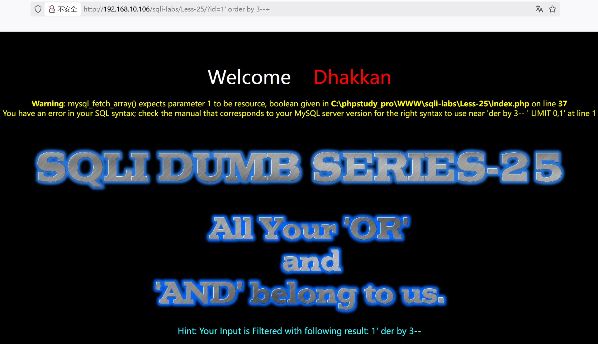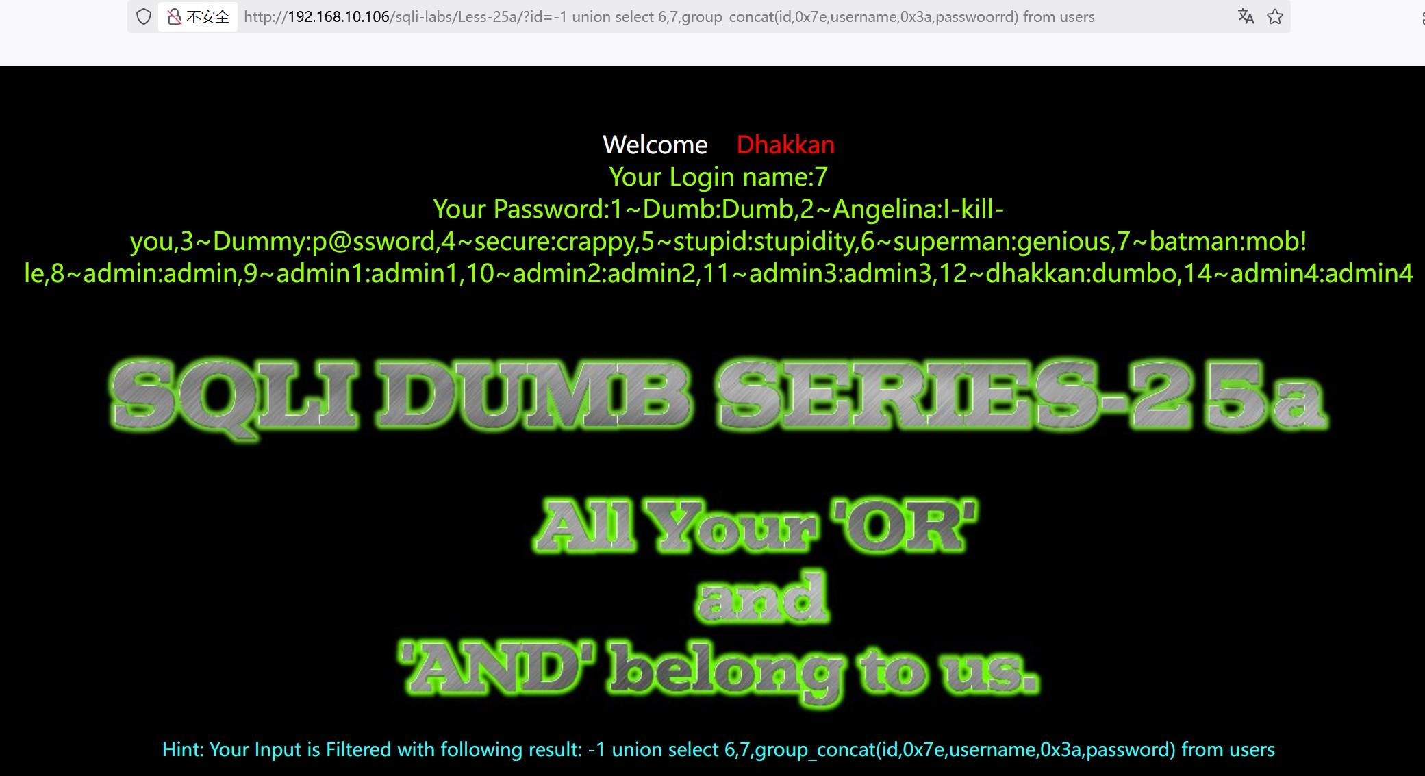 在职老D渗透日记day17:sqli-labs靶场通关(第25关和第25a关)get 过滤or和and ‘闭合 数字型