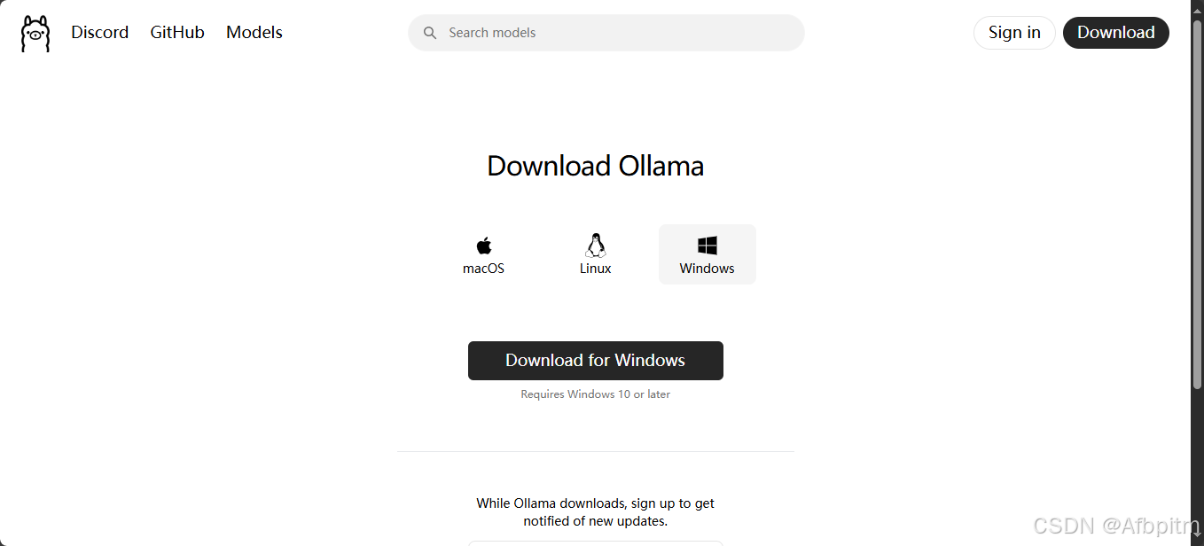 - 再次进入 Ollama 官网(不要关闭命令提示符窗口)。