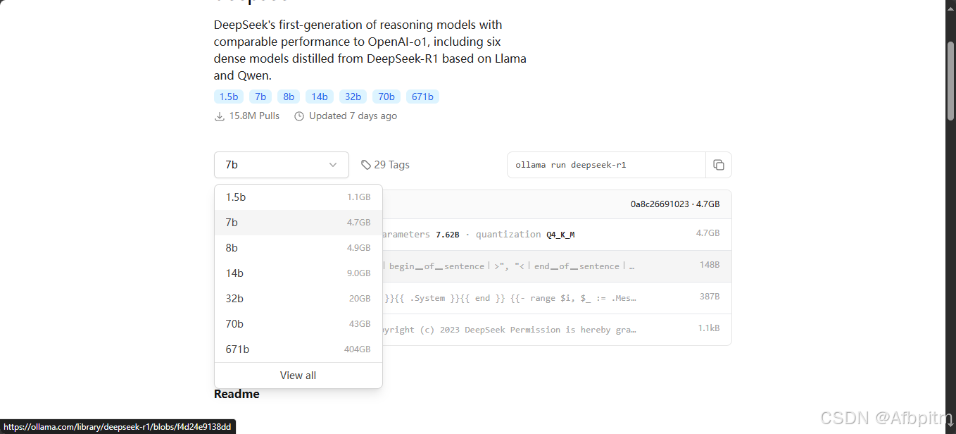 小型蒸馏版: 适合低资源环境,显存需求约 8GB,内存需求约 16GB。(1.5b、7b、8b)