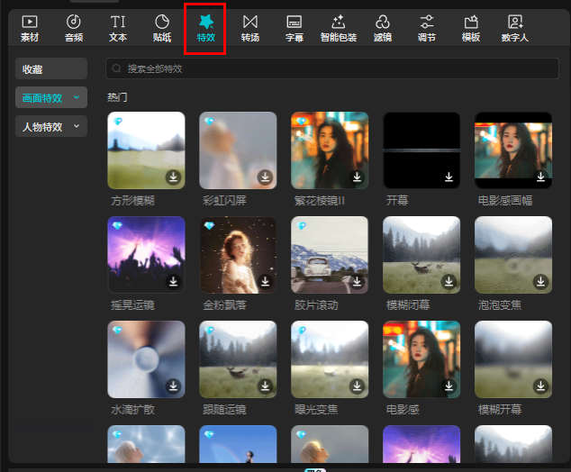 特效主要有两种,画面特效针对的是整个场景,人物特效主要针对人物。