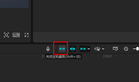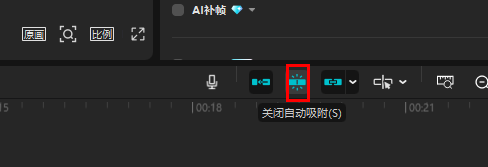 主轨磁吸按钮默认是打开的,它能保证主轨道的素材紧密衔接,不会出现闪帧的情况。