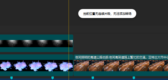 需要注意的是,不在同一轨道内的素材是无法添加转场的,这是剪映软件特有的设置。