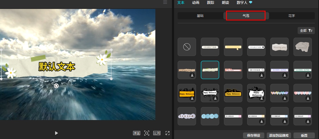 气泡就像是文字的背景,咱们可以从已经提供的气泡中挑选使用。