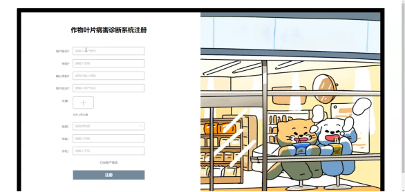 在注册流程中,用户在Vue前端填写必要信息(如用户名、密码等)并提交。前端将这些信息通过HTTP请求发送到Java后端。后端处理这些信息,检查用户名是否唯一,并将新用户数据存入MySQL数据库。完成后,后端向前端发送注册成功的确认,前端随后通知用户完成注册。这个过程实现了新用户的数据收集、验证和存储。系统注册页面如图5-2所示: