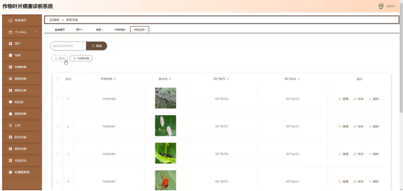 • 病害信息:病害描述、病原体详情、高清图谱上传
