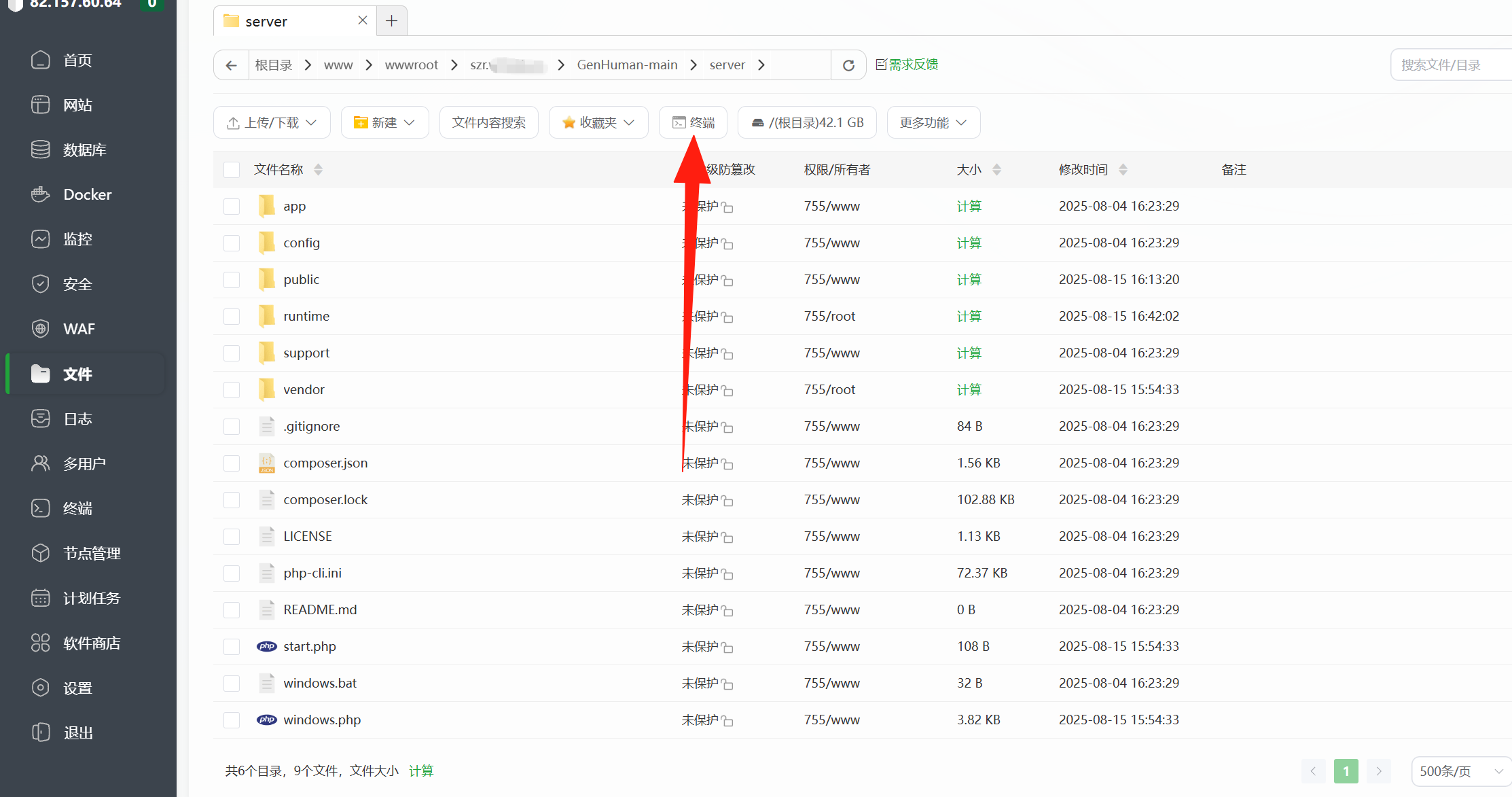11.进入该网站的终端,然后输入下面的命令(解决php环境问题)