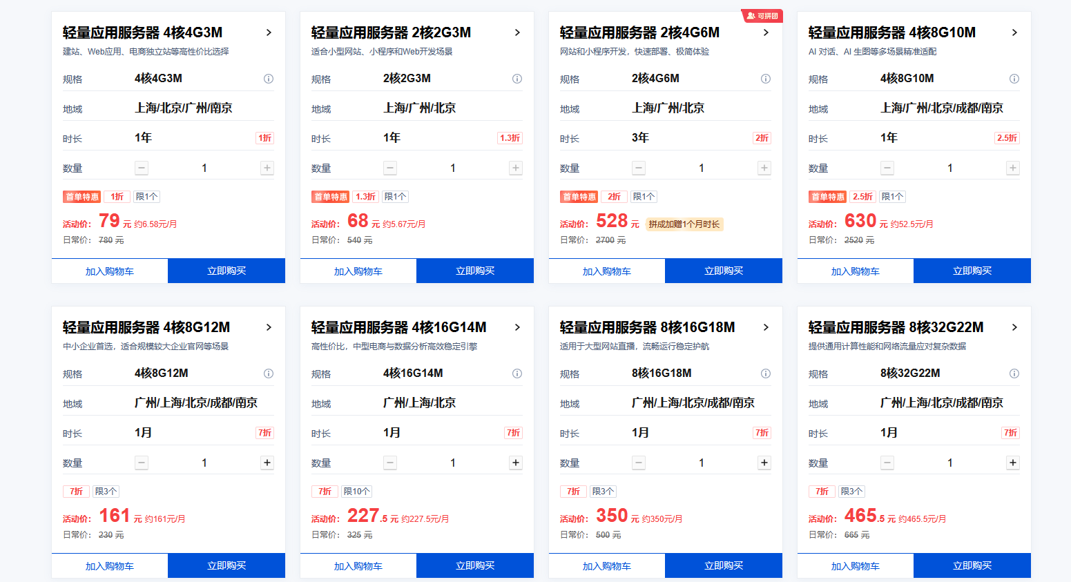 2.轻量服务器活动一般在中间,不仅有秒杀,还有首单特惠机!秒杀请提前登录进入,一般来说只要你不超过时间大概率能抢到。