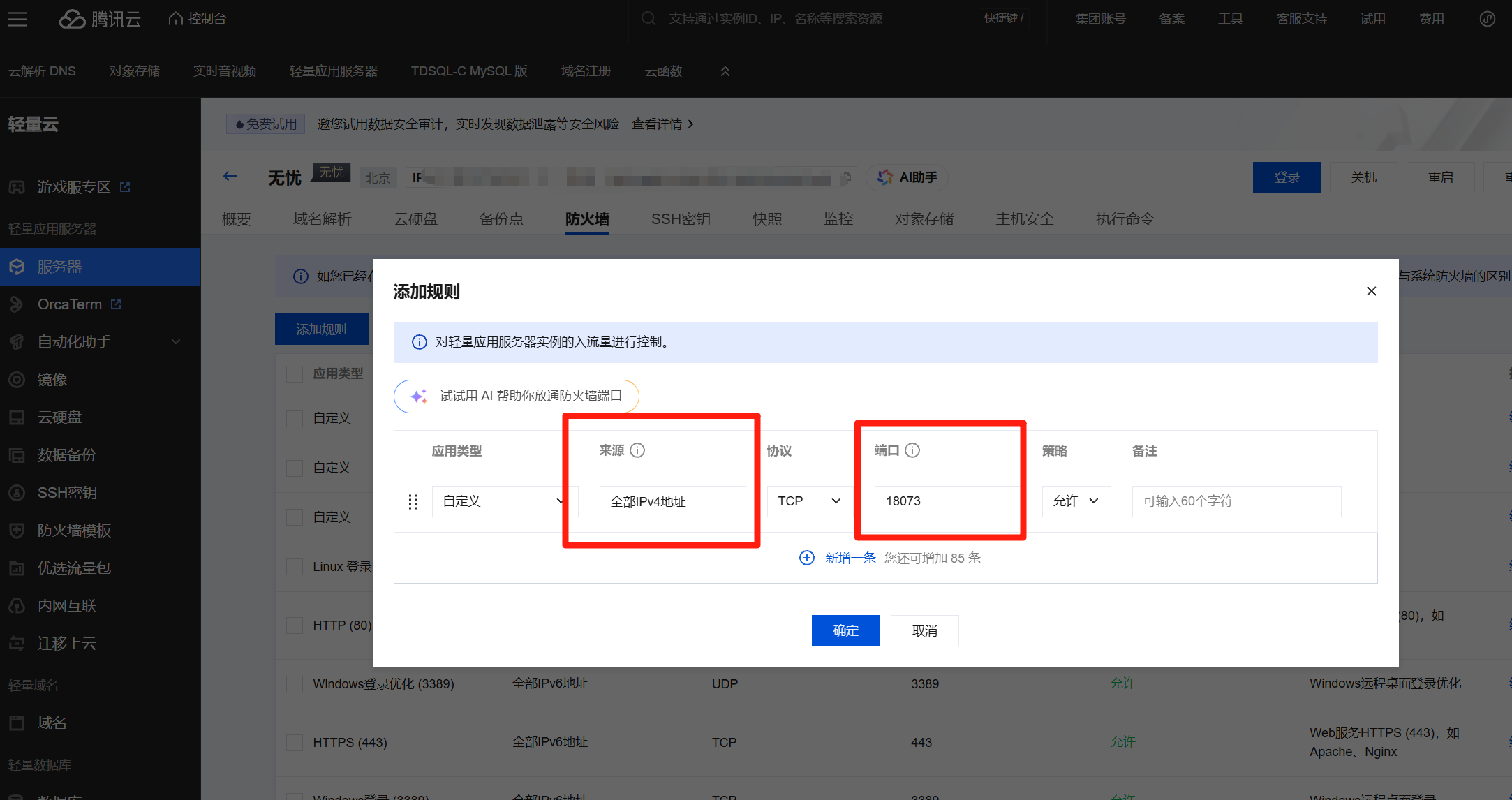 2.不知道怎么找到这个防火墙的,可以直接在这块搜索轻量就能进入控制台,然后点击你购买的轻量服务器就能找到防火墙位置了。