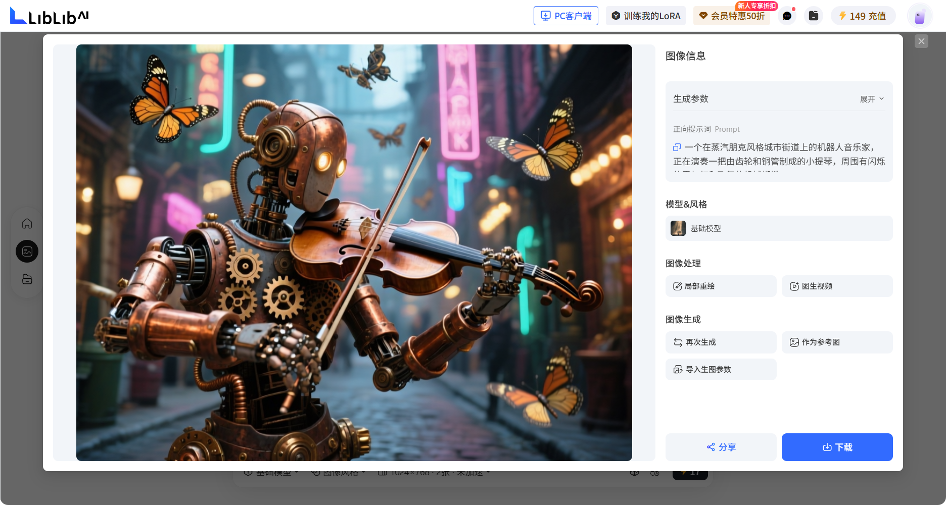 LibLib每日是免费送160积分,但是一张图就要花费9积分,也算是挺贵的哈
