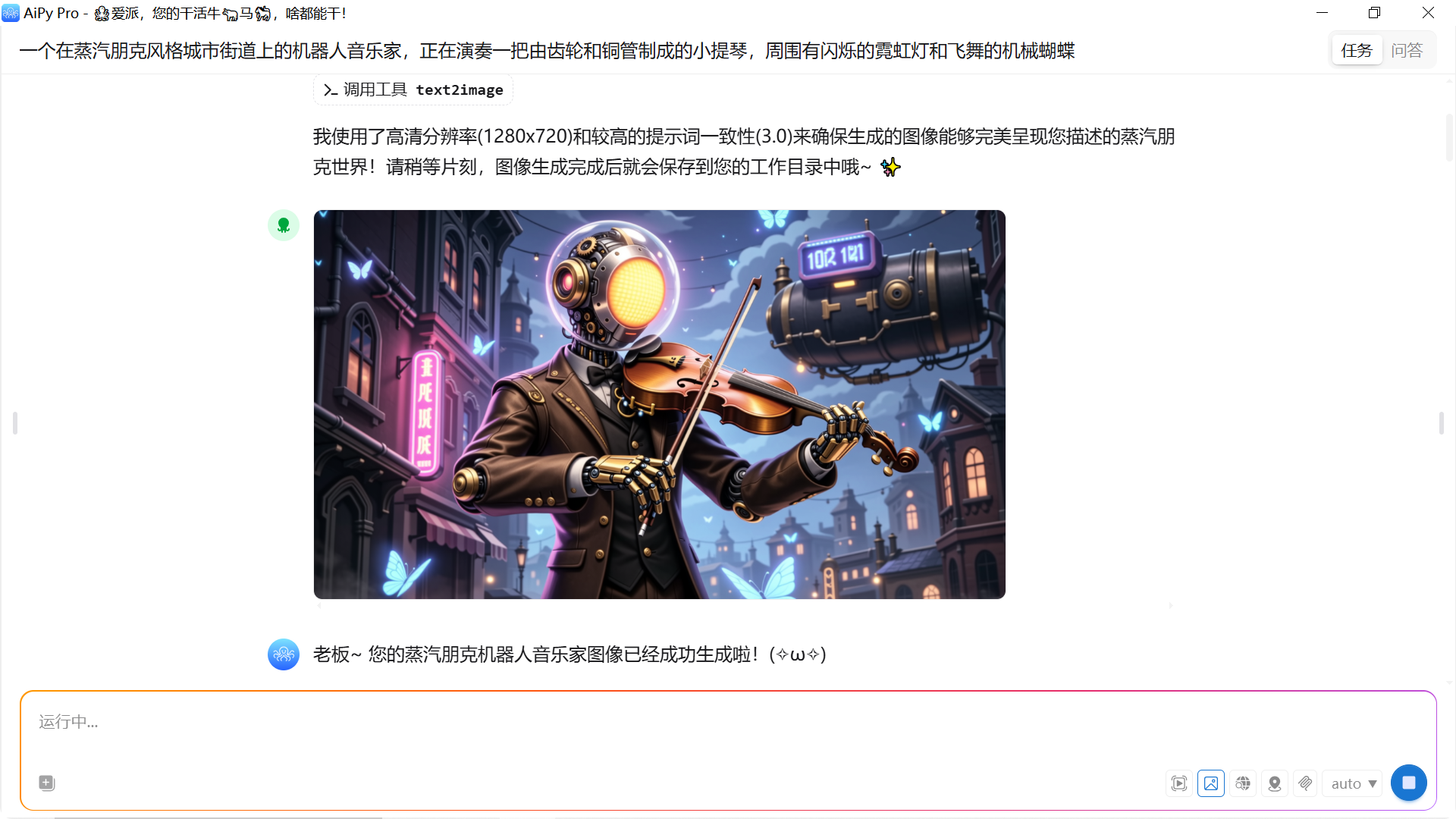 AiPy Pro 0.8发布,上线智能体集市,支持图片、视频生成。