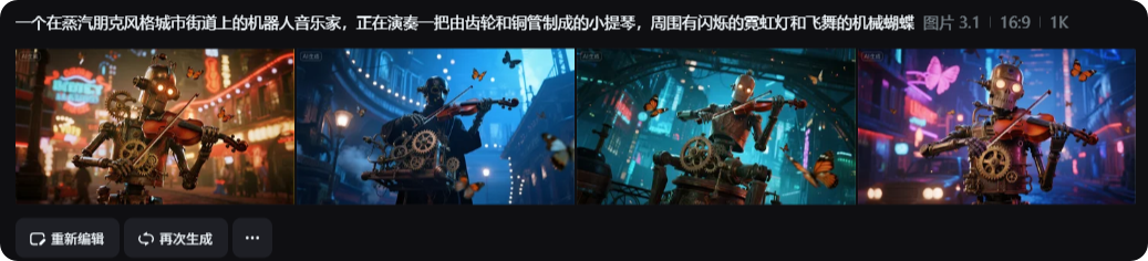 再说生图效果,语义理解上出现和即梦同样的错误,机器蝴蝶变成了写实风格。但清晰度和视觉上面都算还是不错。