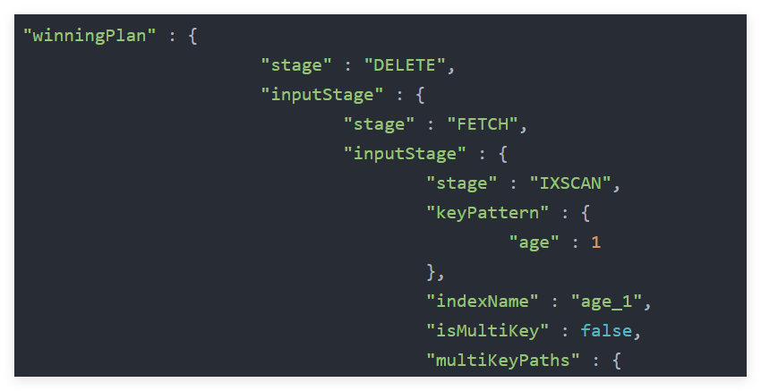 db.user.deleteOne({ "age" : 2828})命令生成的查询计划如下: