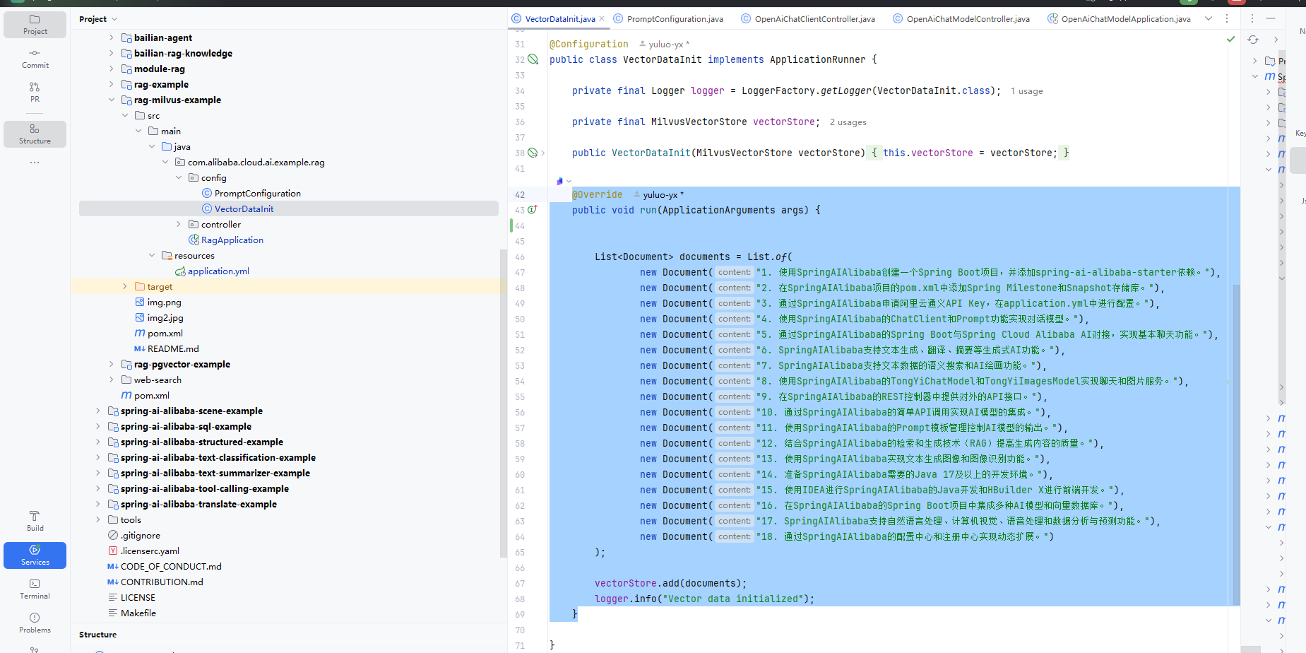 按照阿里官方示例https://github.com/alibaba/spring-ai-alibaba,插入数据发现会报错,io.milvus.exception.ParamException: The key name is not found 各种错误,且流程不规范
