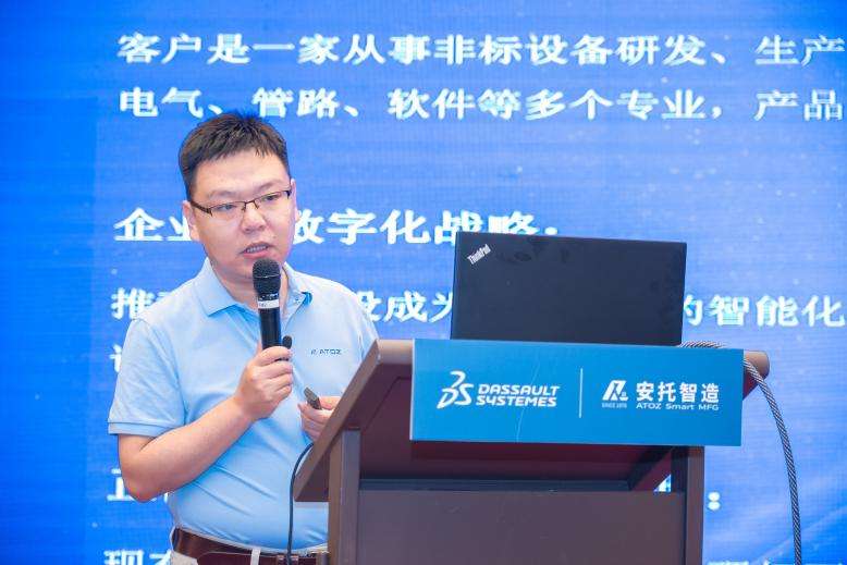 会议期间,安托业务咨询总监强晓勇分享了国内某新能源商用车如何以协同管理为抓手,以协同设计为方法,创建一个以提升质量、缩短周期为目标的研发平台。同时,他还介绍了某非标设备企业如何通过数字化工艺系统建设支撑公司向先进制造、高端制造和智能制造型企业转型升级,达到国家智能工厂试点示范项目要求,实现《智能制造能力成熟度模型》四级的成功案例。