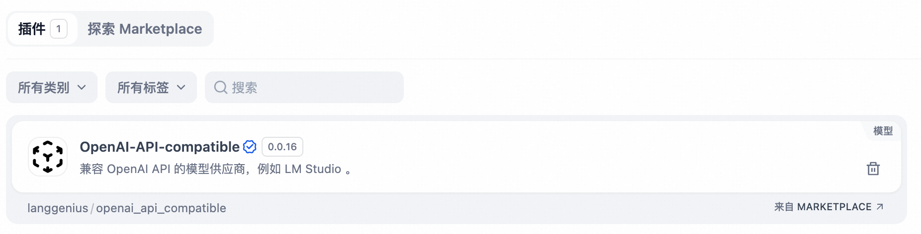 - 前往 Dify 应用市场,安装插件 OpenAI-API-compatible