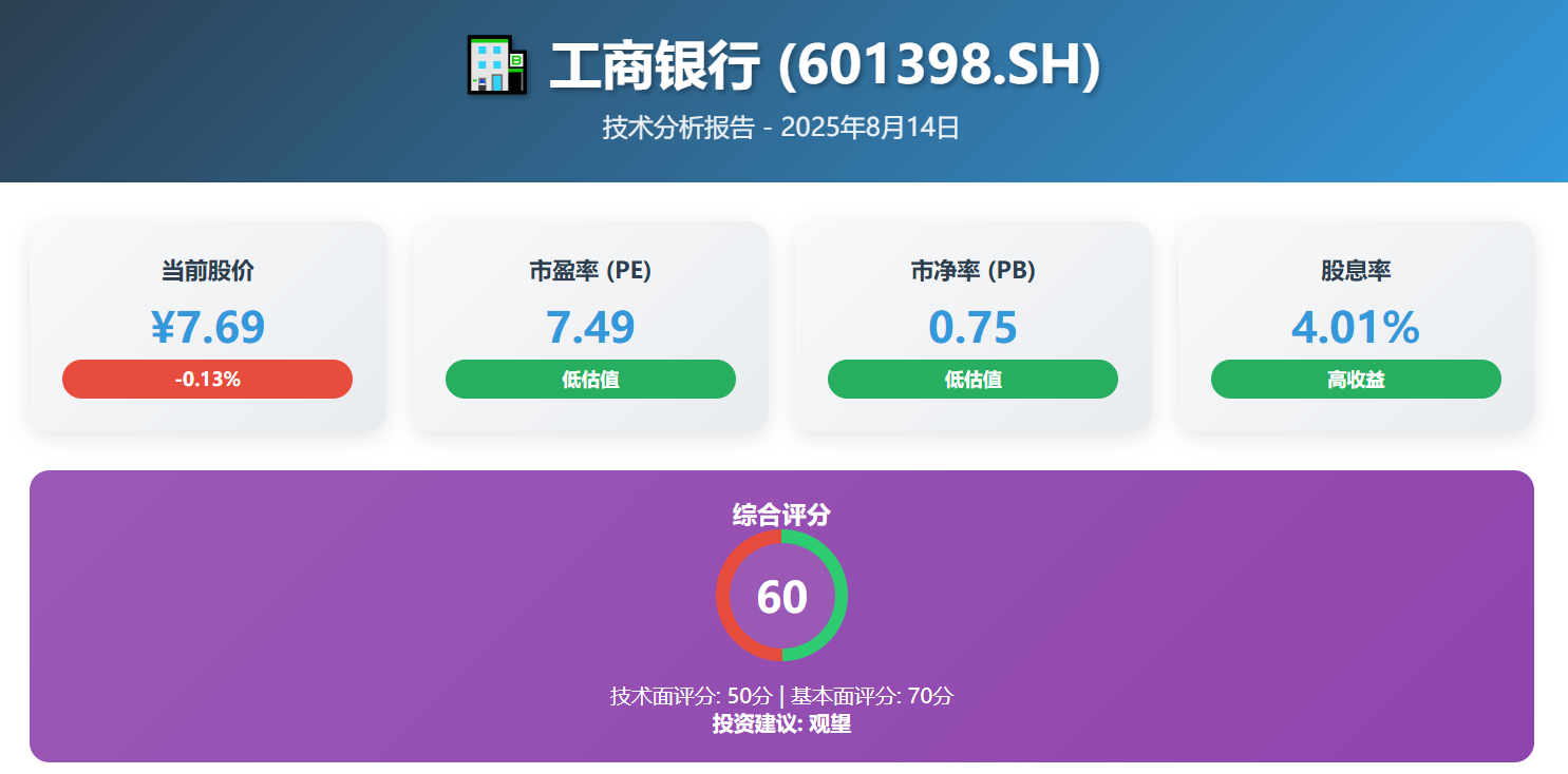 获取工商银行最近一年的行情数据,写一个技术分析报告,并制作成可视化的HTML页面。