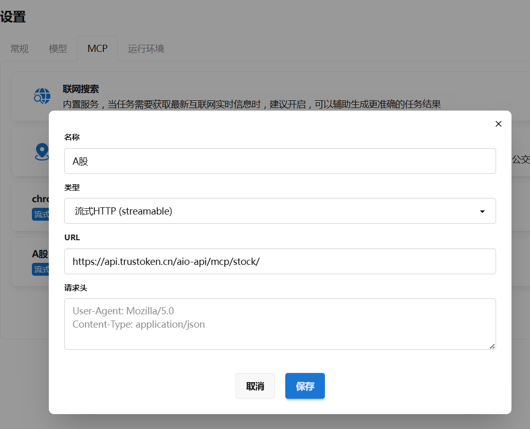 打开AiPy,设置-MCP-添加,按照下面格式添加即可使用。