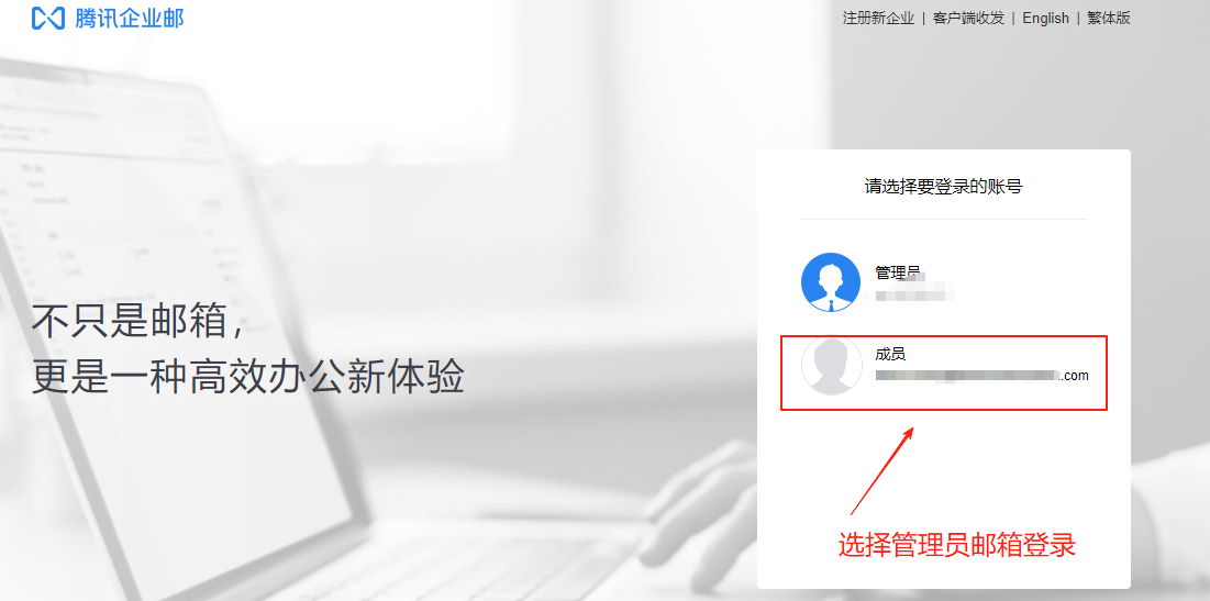 首先比较容易发生误解的是。腾讯的邮箱它有一个管理员的界面,还有一个就是管理员邮箱的界面。登录管理员界面的地址和账号和登录管理员邮箱的地址界面账号都不一样,所以这两个弄错了,经常会有更多发生错误。