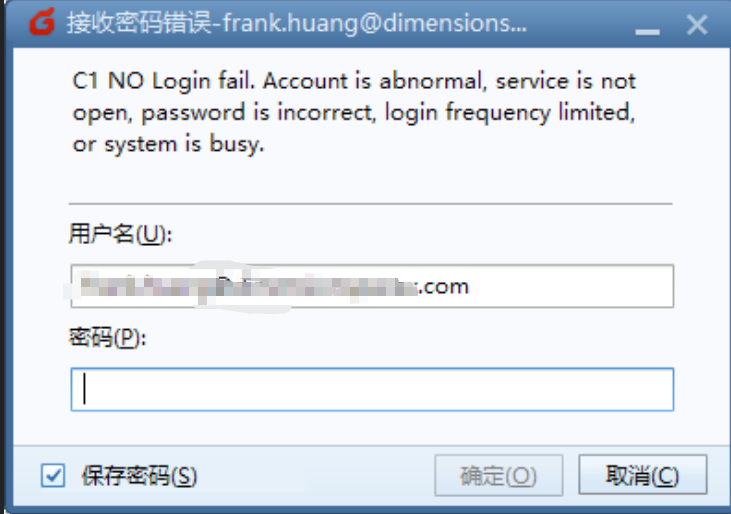 出现这个密码的问题呢,最主要的是因为我本来有一个Foxmail的客户端来获取数据和邮箱,但是由于现在的腾讯企业邮箱的一个新的安全机制啊,就是如果你的企业邮箱有一段时间内不用,它会自动的把你的客户端的账号给屏蔽掉,也就是不能通过原客户端的保存的密码进行访问了。