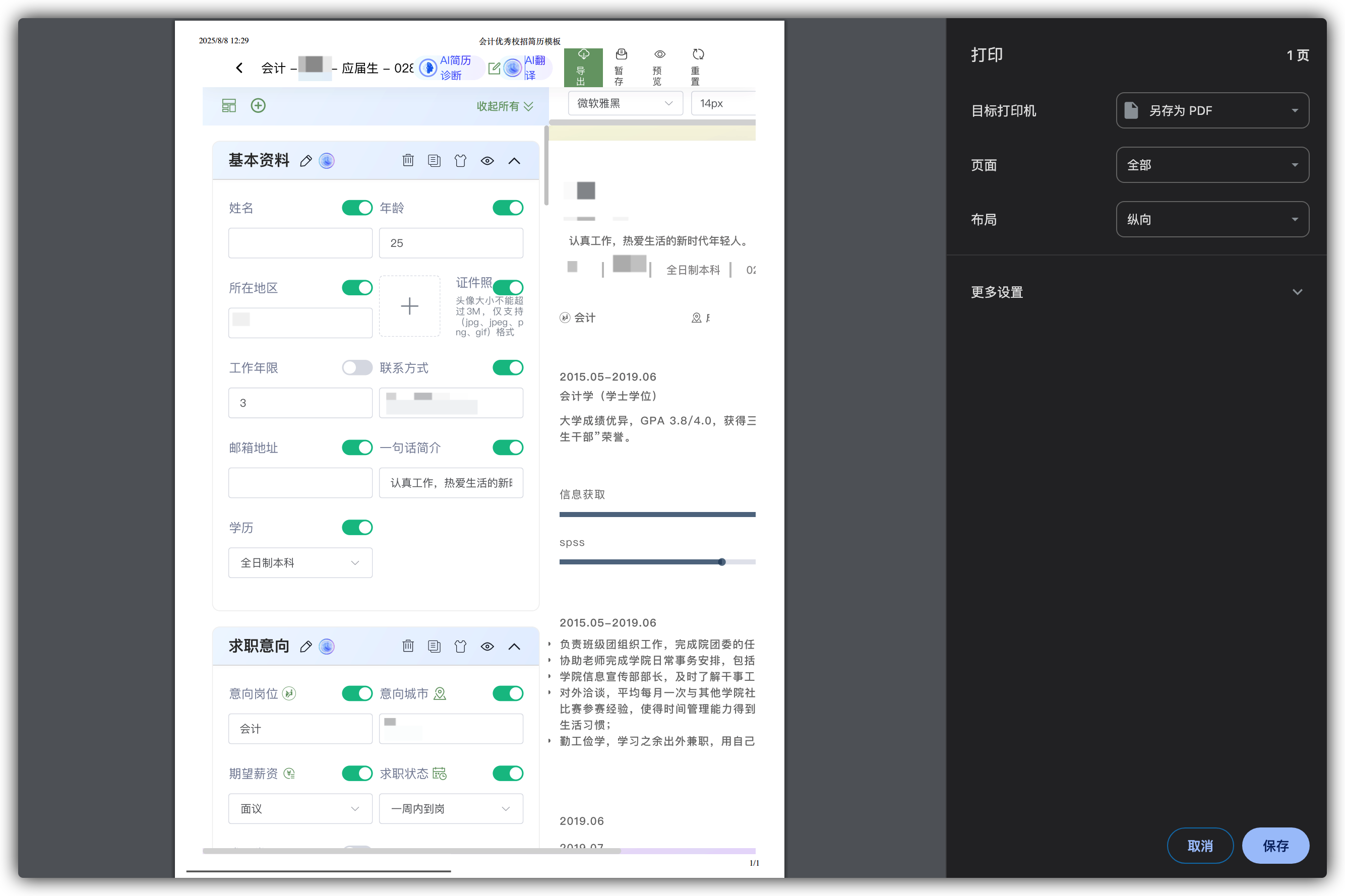 很多免费的简历平台,看似也能下载 PDF。但是,实际上,它们是 让你自己右!键!选!择!打!印!