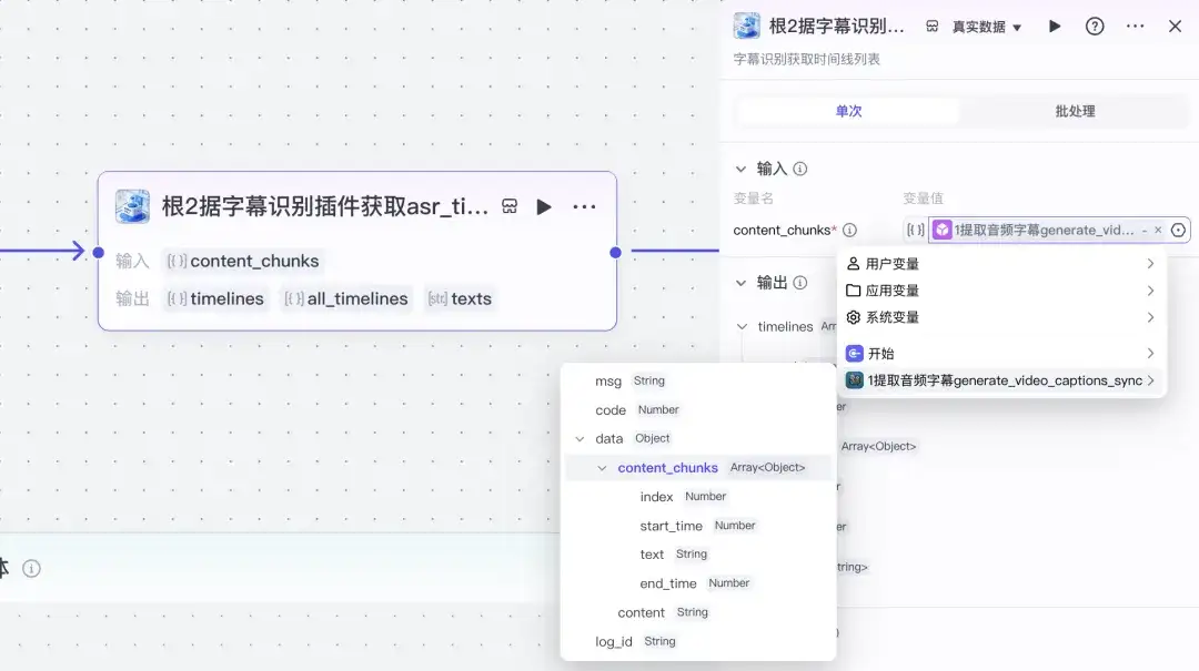 调用generate_video_captions_sync插件,自动识别音频中的台词内容