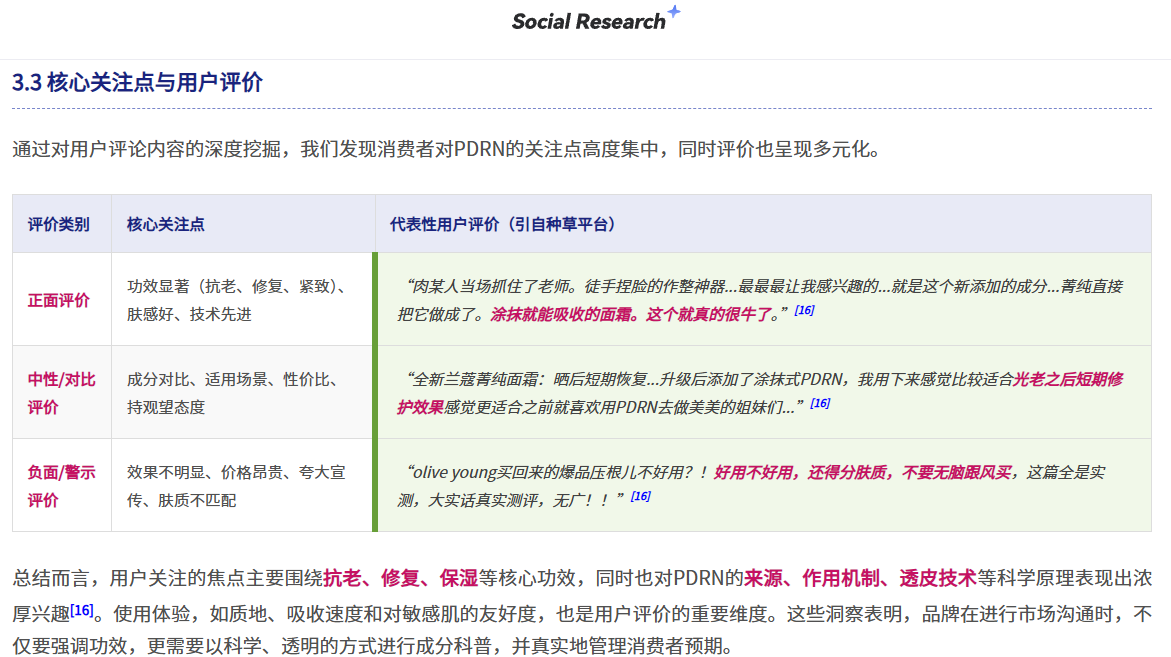 案例:调研 “新成分 PDRN 护肤品” 时,同步整合美妆论坛讨论、电商反馈、社媒用户评论等数据,并关联竞品在各大社媒平台的投放节奏,让数据维度更立体。