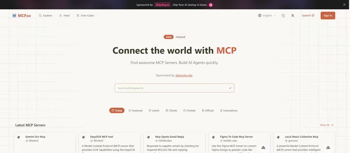 如果说 Github 是全世界存放源代码的仓库,那 MCP.so 就是存放 MCP Servers 注册信息的仓库(之一)。
