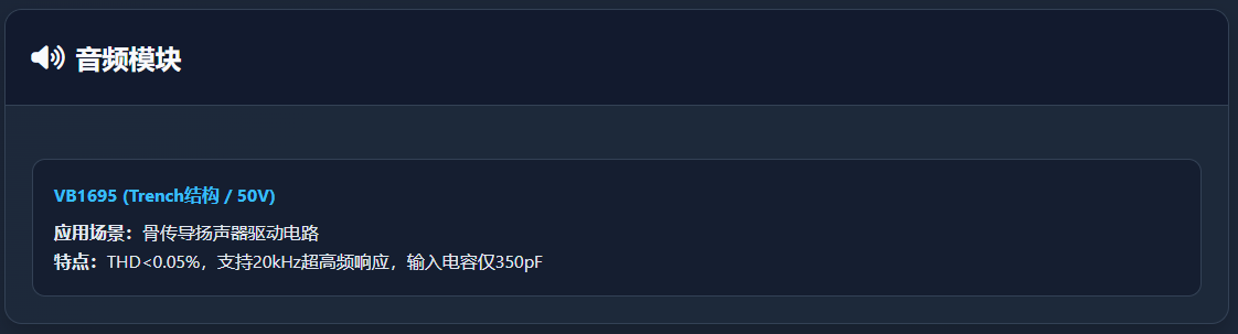 音频驱动模块推荐型号:VB1695 主要特点:低失真、高保真、低延迟