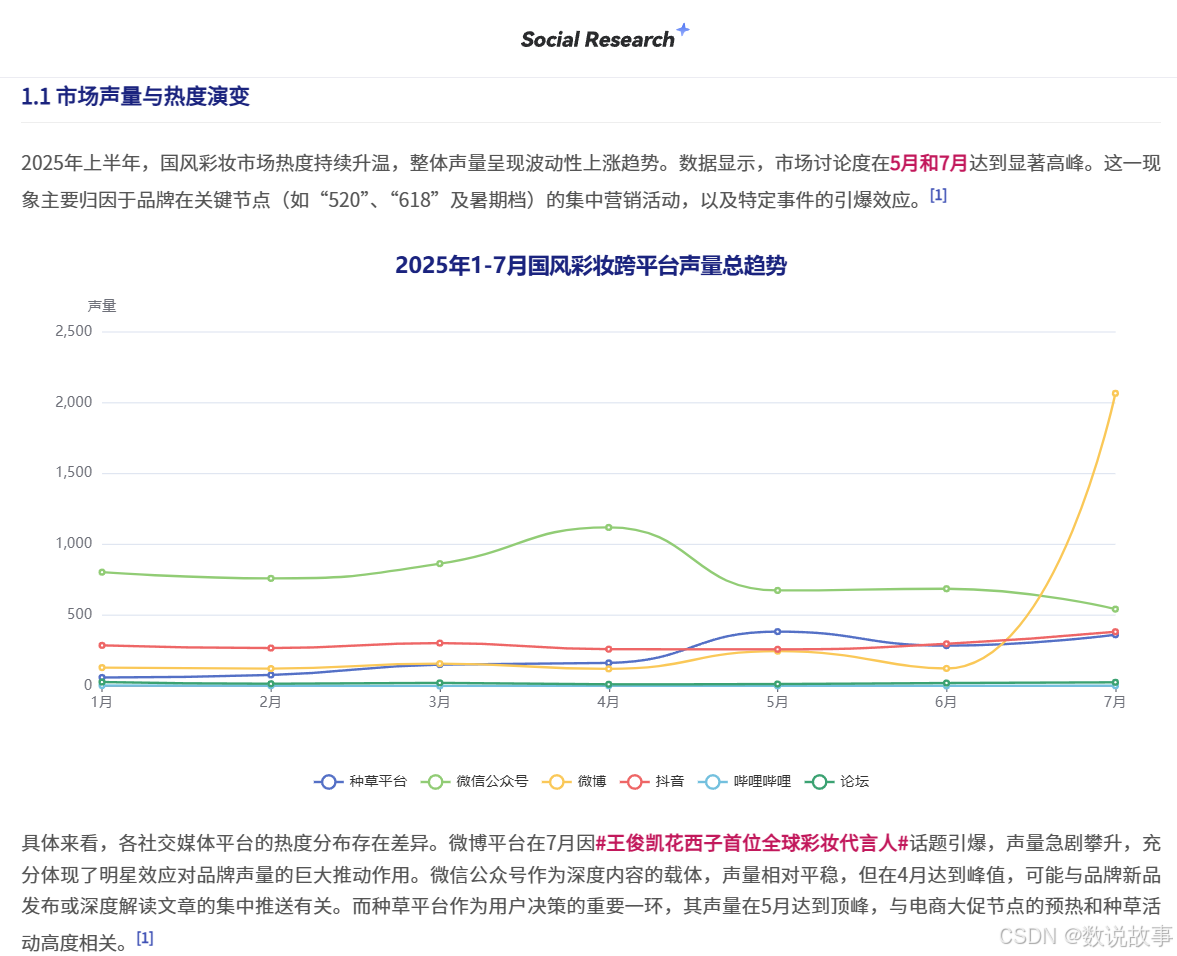在当今数据驱动的时代,营销的精准度与效率直接决定了品牌的竞争力。面对海量的市场信息和消费者反馈,传统营销分析方法显得力不从心。作为数说故事旗下的一款全能营销AI Agent工具,Social Research凭借其“大模型+海量社媒数据”的核心优势精准赋能营销决策,一键生成专业分析报告!