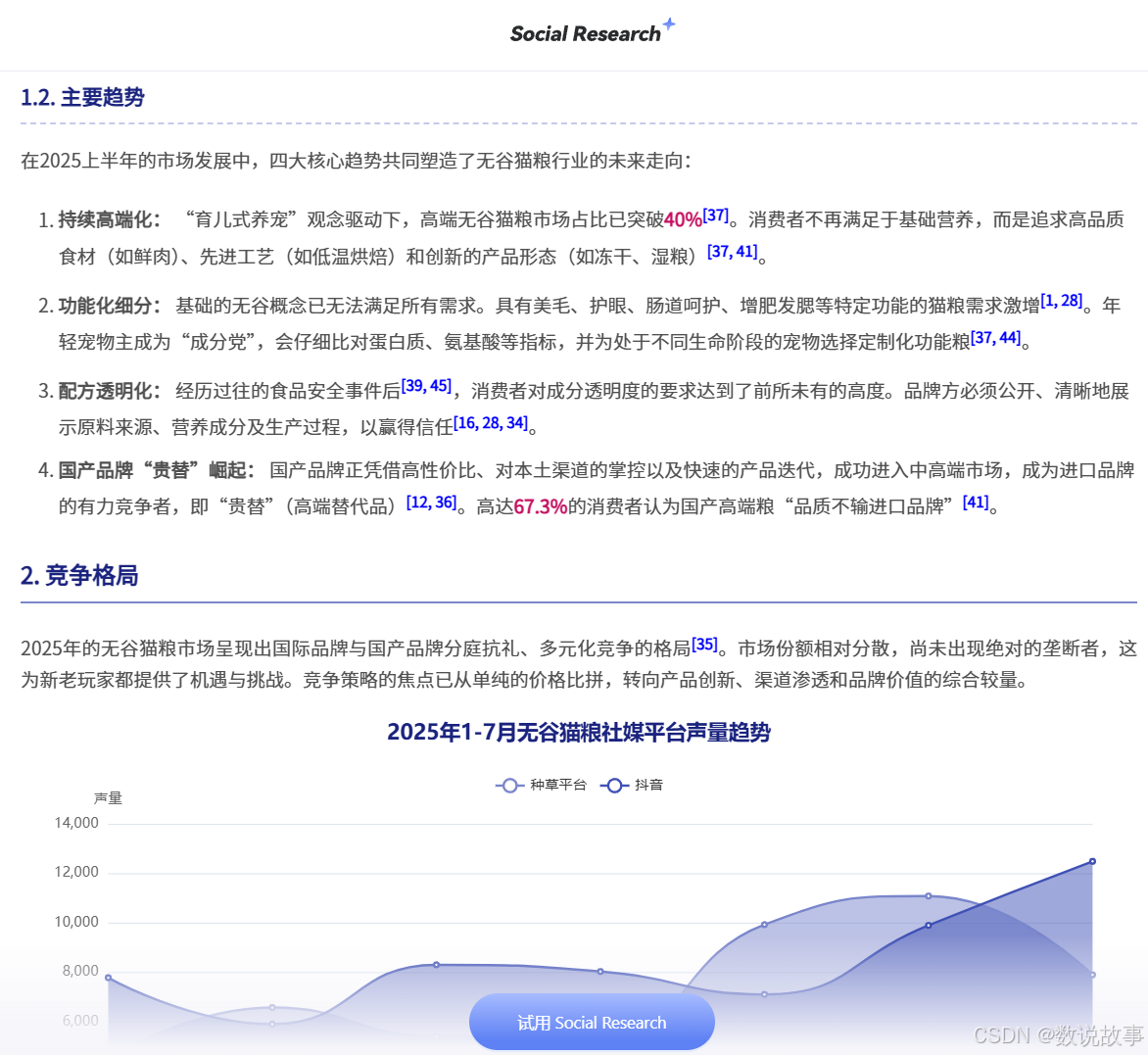 试用入口:点击下方卡片注册,即可免费体验!数说Social Research-社媒领域的AI Agent,全能营销智能助手https://index.datastory.com.cn/social-research?=AAA009