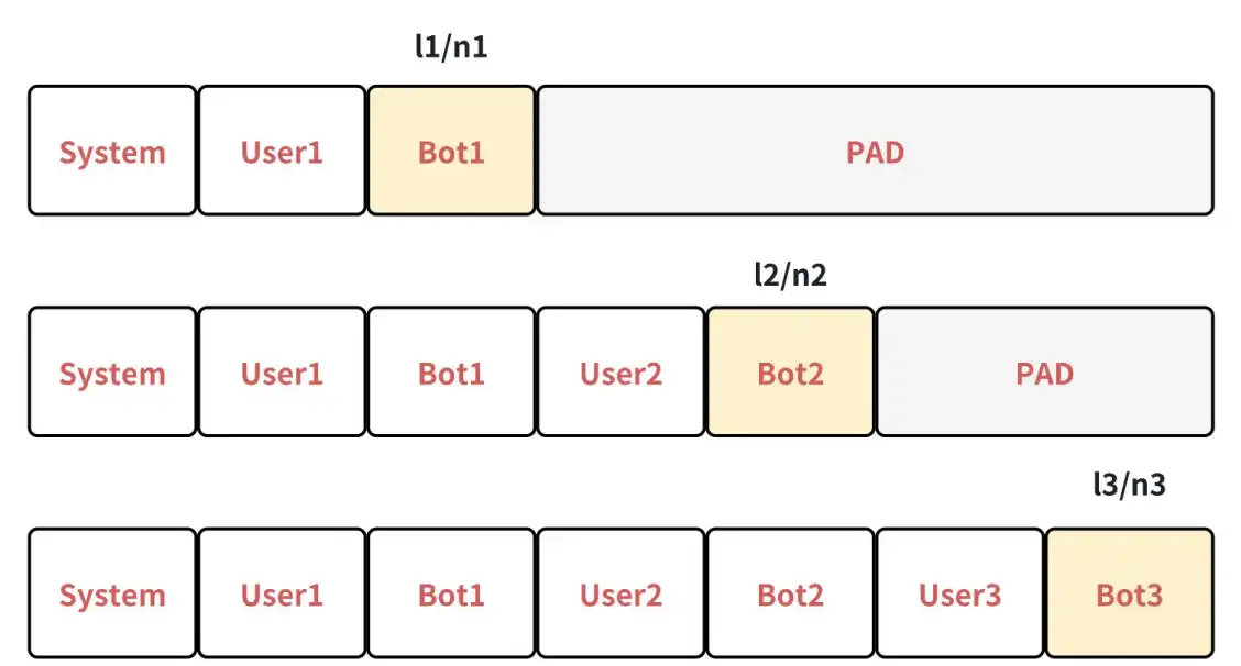 - ⚠️ 缺点:同一对话的公共前缀会被重复计算,训练吞吐较低。