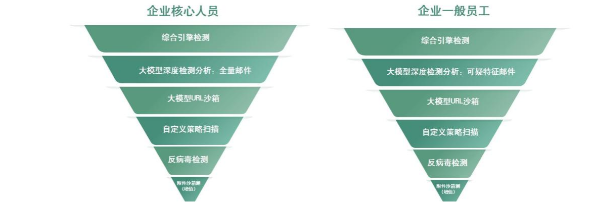 核心技术:按角色提供差异化防护,核心高管邮件 100% 全量检测,普通员工可疑邮件识别效率提升 40%,合理划分资源,避免资源浪费。