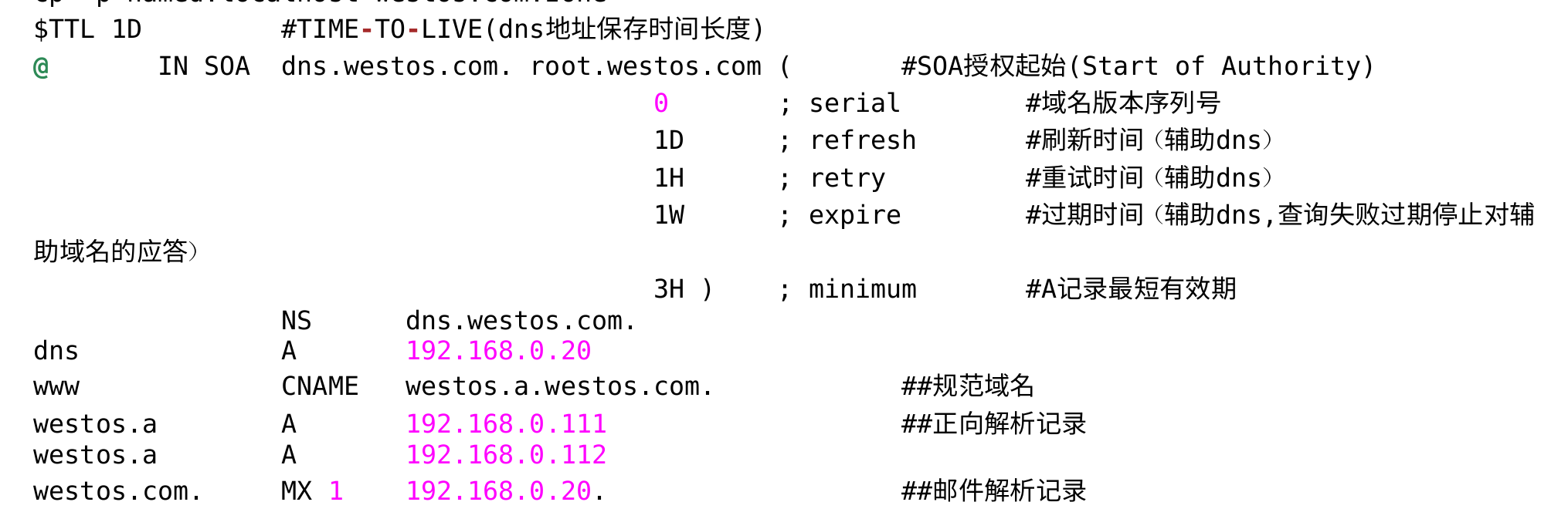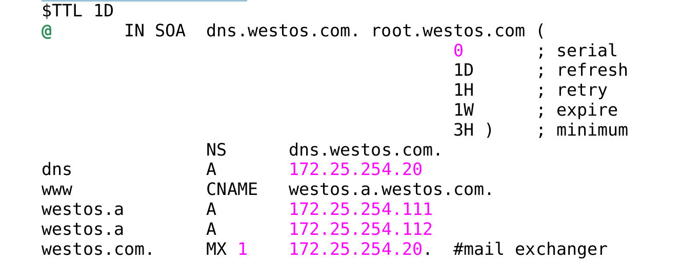 file "westos.com.zone";##域名A记录文件